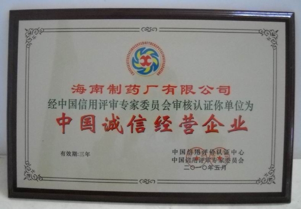 【中國誠信經(jīng)營企業(yè)榮譽(yù)證書】